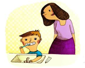 - Soyez un modèle pour l’enfant en lui montrant que cela fait partie de votre routine 2 fois par jour.